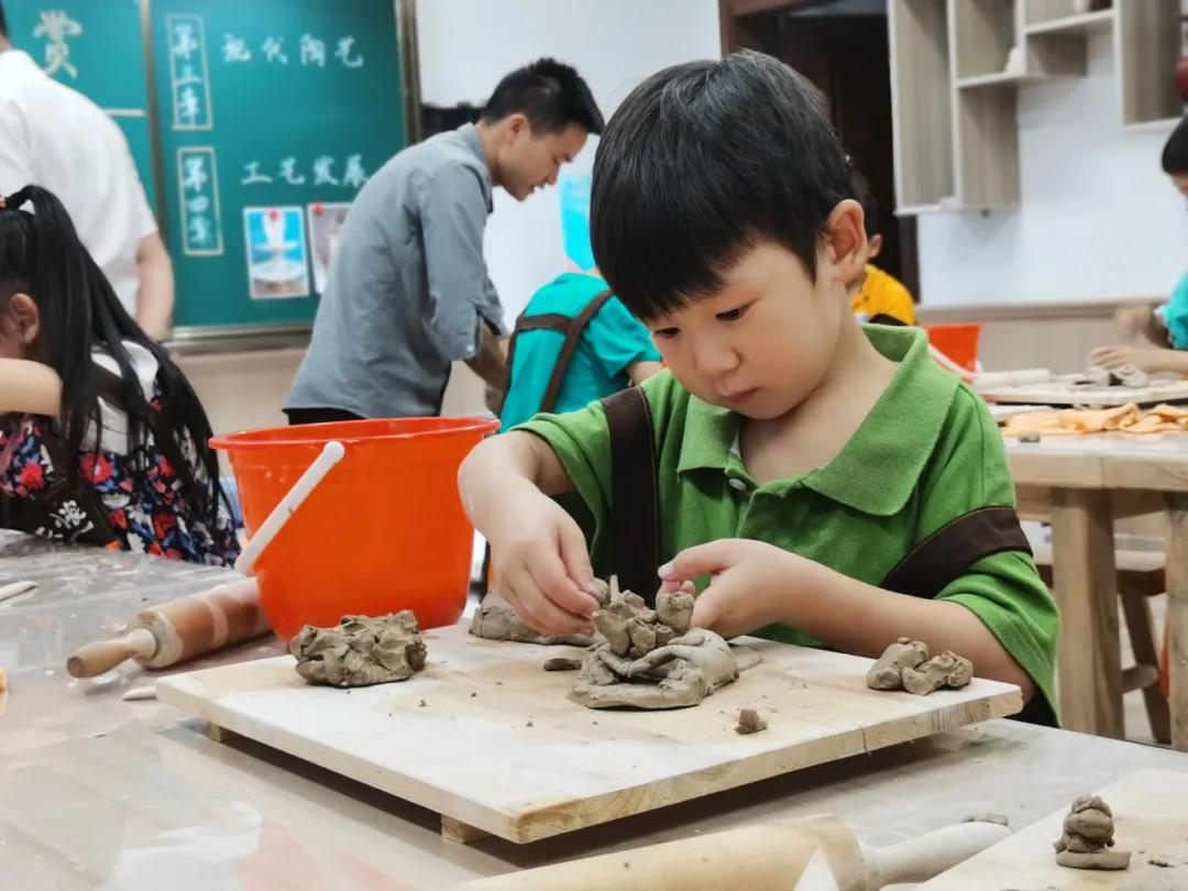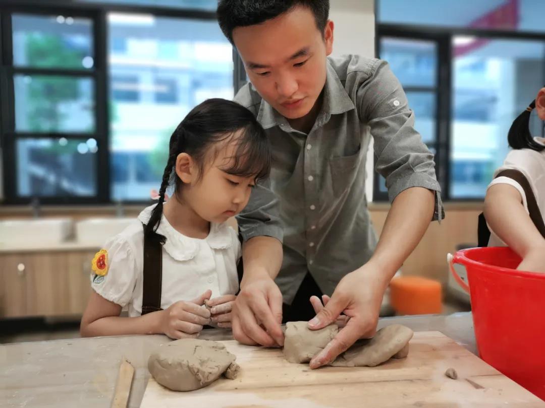 陶艺课上,孩子们已经学会了认真倾听老师的讲解,观察老师的操作,安静专注。