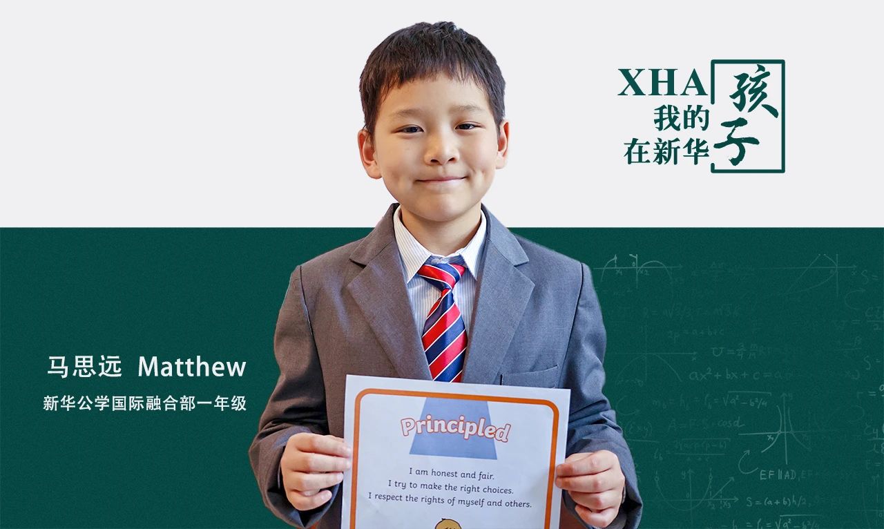 马思远,英文名Matthew,新华公学国际融合部一年级学生。性格热情开朗,善良富爱心,有很好的沟通能力。喜欢画画、音乐、表演和做手工。
