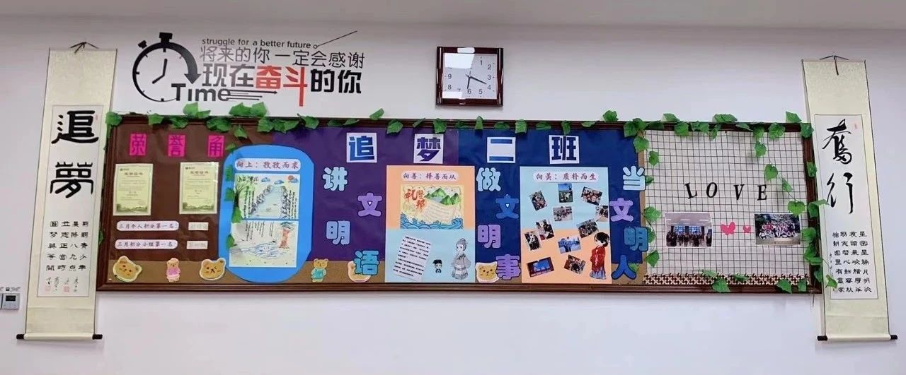 有梦想就有希望。梦想就像河流,只要不停奔腾,终能汇入大海。青春期的孩子需要梦想,商亦举老师将所带的八(2)班命名为“追梦班”,并与孩子们一起设计了班徽,让每位学生在班级的心愿墙上写下自己的梦想,时刻提醒孩子们积极向上、不懈努力。