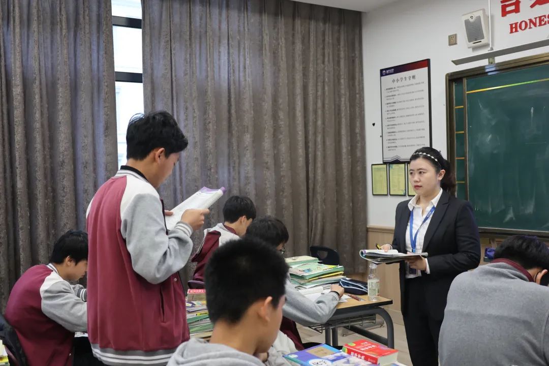 最后,就是加强学习方法的指导。大多数学生英语学不好的最基层原因是词汇量太少,今天背,明天忘,背了一百年了还是“abandon”。对于这样的问题,我会给他们总结一些背诵的小技巧,像是“拆分法”“音译法”“释义法”等各种提高背诵效率的技巧。除此之外,还会盯着他们从课前预习到课后复习一连串环节,养成良好的英语学习习惯。