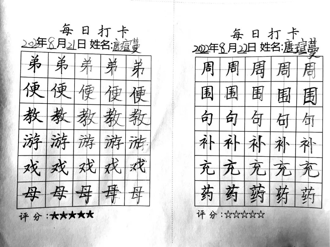 这次活动充分激发了师生的练字热情,暑假里,师生还在端端正正地写汉字,屋外挥汗如雨,屋内挥毫泼墨,他们用行动诠释了“持之以恒”。