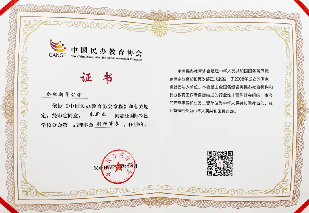 新华公学荣获中国民办教育协会国际特色学校分会副理事长单位