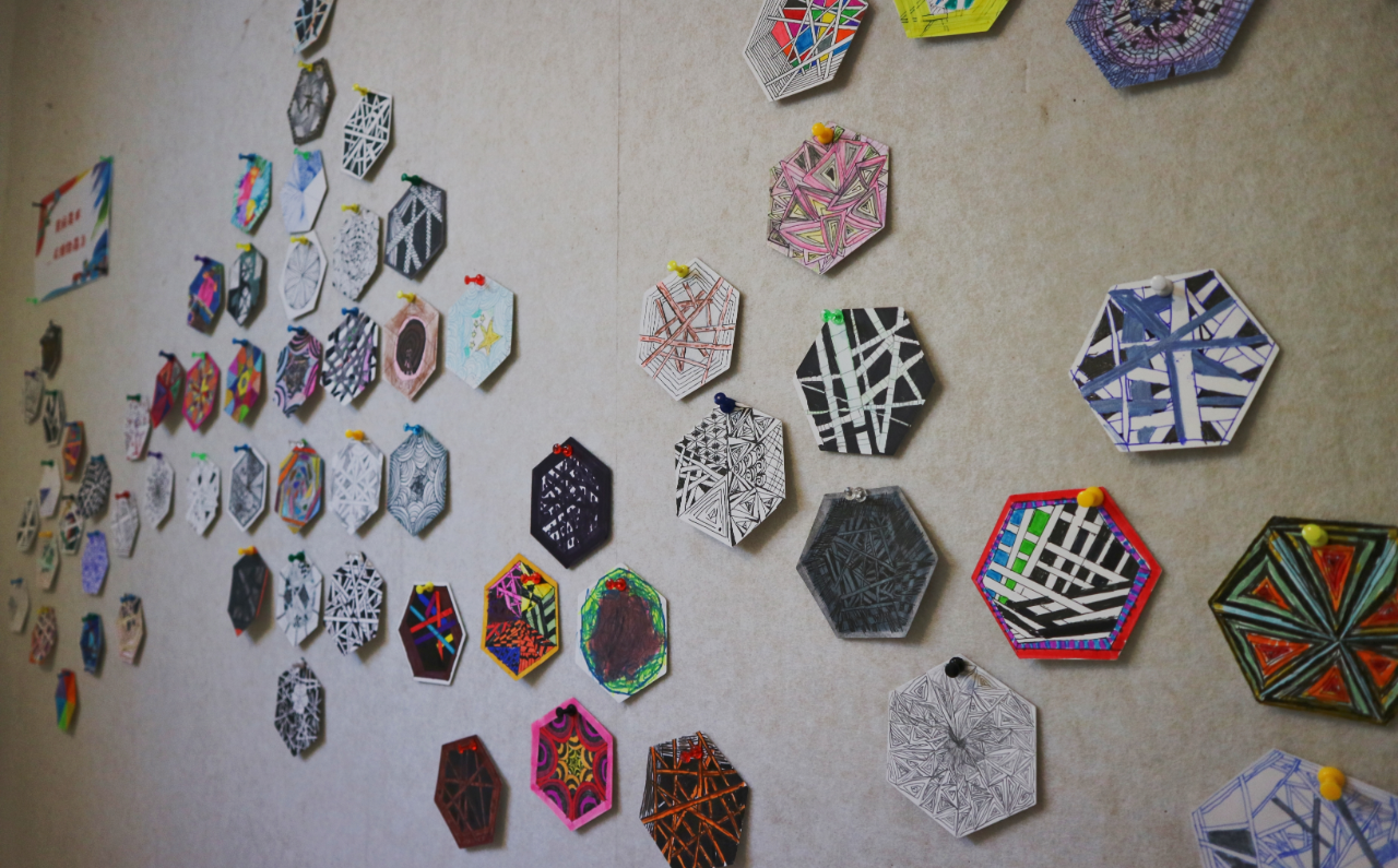 当你进入教学楼,仿佛进入到一个奇幻而美妙的小型美术馆,校园就是展览馆,走廊就是画廊,孩子们一抬头,就会被同学们富有创意的作品所吸引。