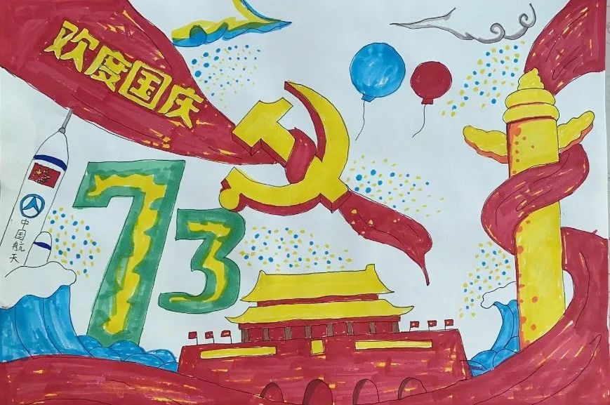 金秋十月,到处可见的“中国红”是最美的色彩。在这个喜庆的日子里,孩子们把他们看到的飘扬的国旗、绚丽的气球和烟花描绘到画纸上,为我们伟大的祖国献上特殊的祝福!