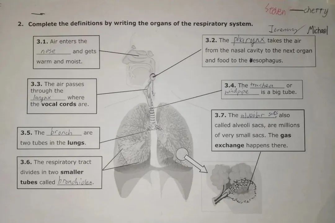 学生需要完成在线以及纸质任务单,并在合作中针对身体系统进行简图绘制与说明。