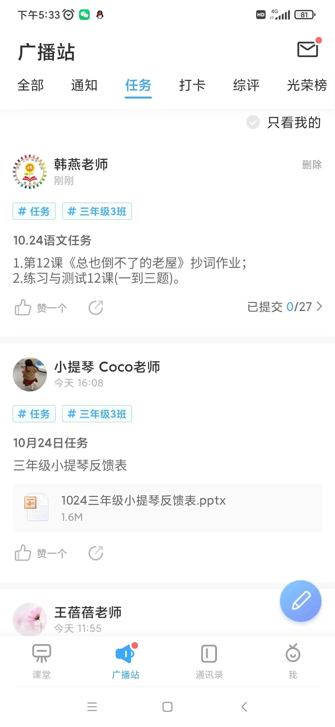 每每线上教学时期,老师们都化身“表哥”、“表姐”,忙碌于各类填表与打卡之中。感谢家长们的积极配合,及时且准确地进行各类作业的上传,防疫要求的打卡,让老师们的工作有条不紊。