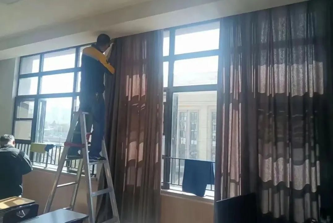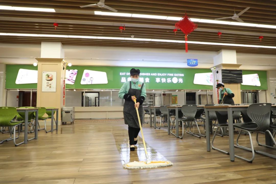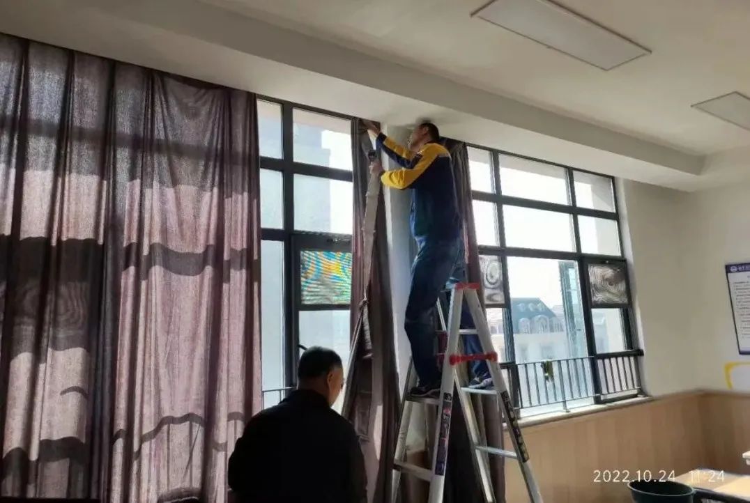 没有了孩子们的身影,略显空旷的校园里依然有着温暖发生,后勤的叔叔伯伯们除了坚持做好每日的消杀与清洁外,还将每个班级的窗帘一一清洗,散发着阳光的味道的教室等待着孩子们的归来。