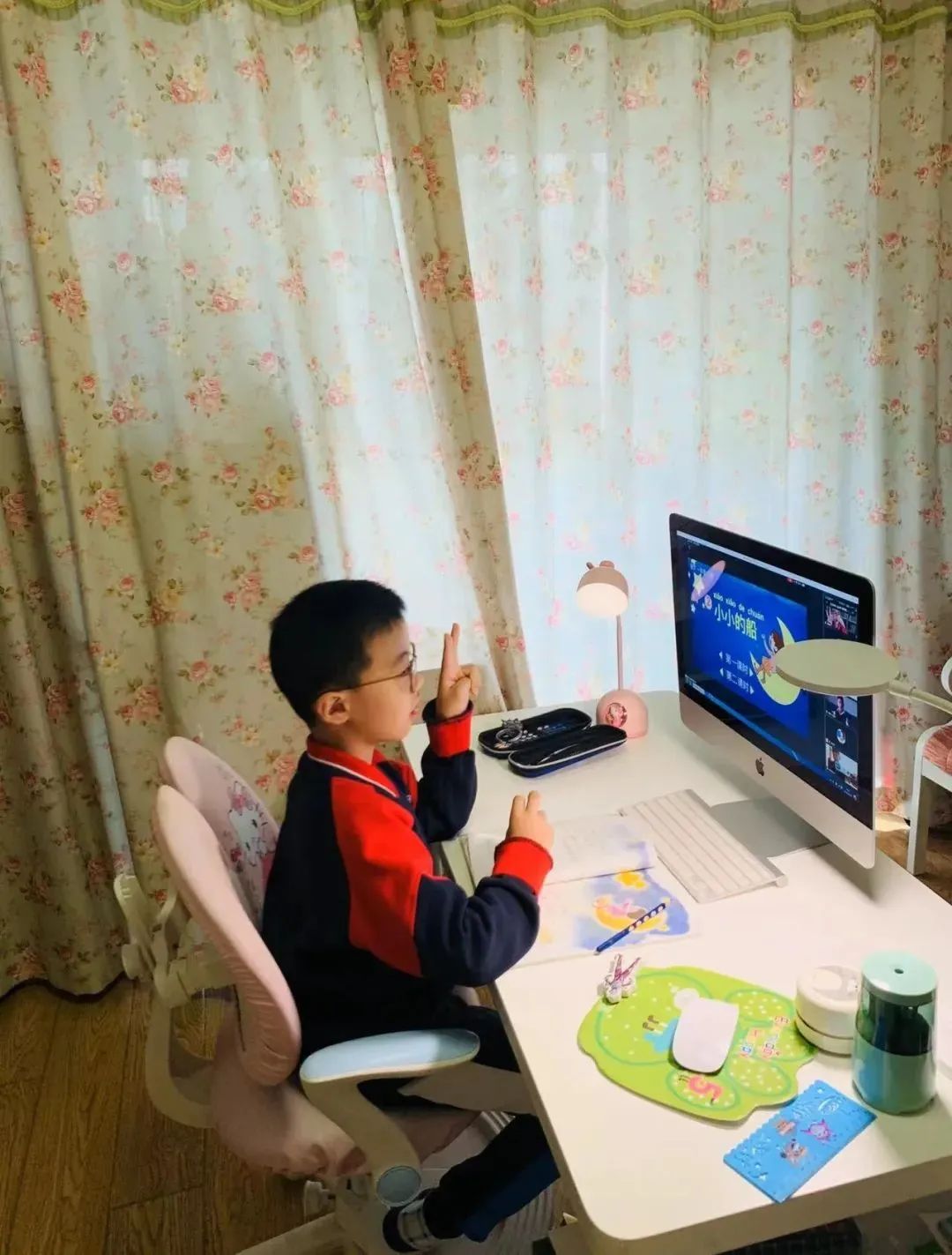 一年级的小朋友们,面对居家上课,一开始的兴奋可能更多一点,刚开始的坐不住,会议室操作生疏,各自涂画,状况百出。老师们立即开展主题班会,打造“最美家庭班级”,在家长的耐心帮助下,个个有模有样,完成了从娃娃,到娃娃兵的转变。