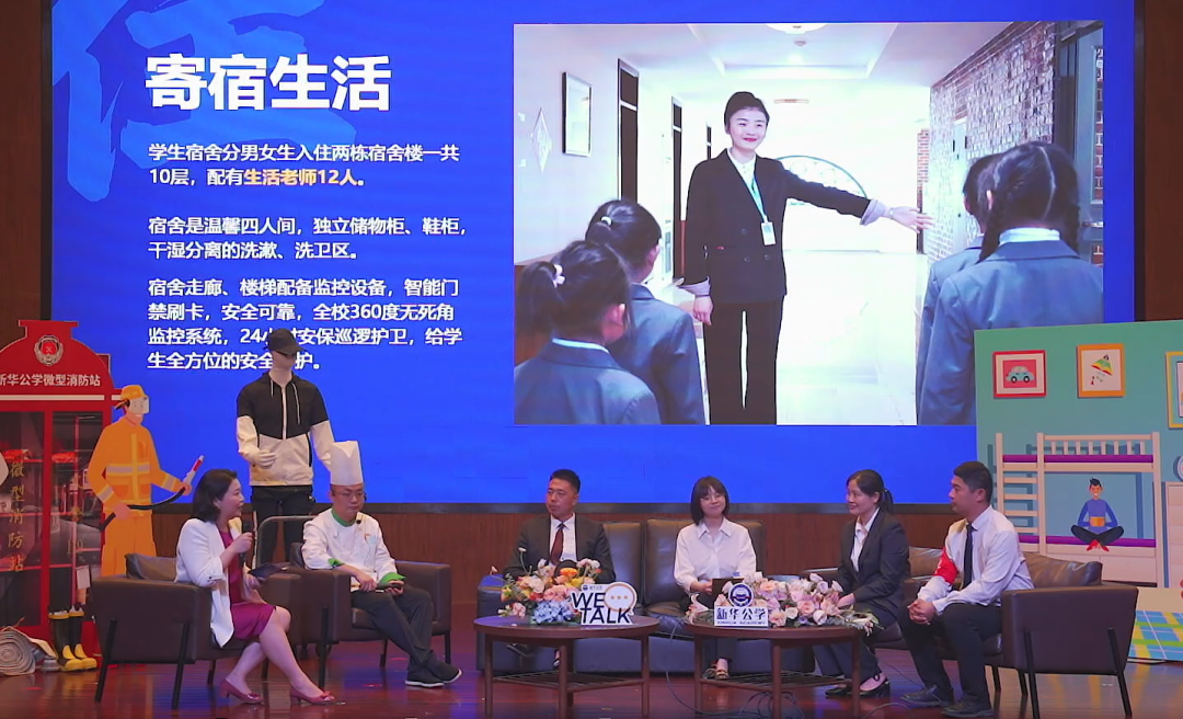 在学校的“衣食住行”我相信是家长们除了成绩以外最关心的问题,我们从学校各个方面展示给大家看,新华公学是如何将“安全”二字做到极致。开场主打一个“反差萌”,平日里兢兢业业默默无闻的叔叔阿姨们,用一个炸裂全场的舞蹈——“护花使者”征服了台下的每一个人,也表明了他们每一位都是未来花朵的守护者。