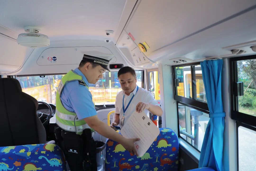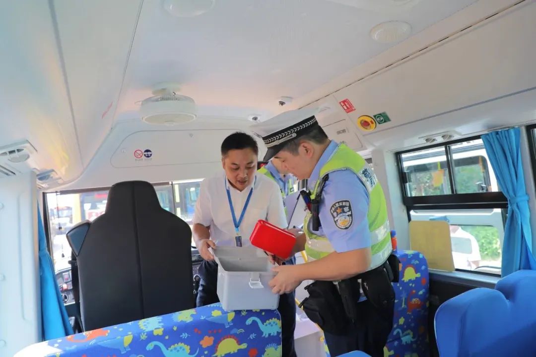 全体培训会结束后,区教体局联合交警大队一同对校车开展现场检查,按照“不漏一校一园、不漏一车一人”原则,对每辆校车的专用标识、停车指示牌、灭火器、安全锤、安全带、急救箱、防疫物品等进行了逐一检查,全面排查安全隐患。
