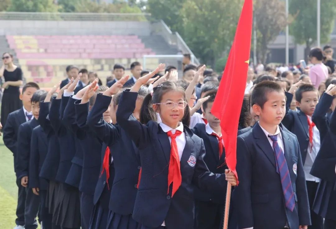 温暖明媚的秋日里,双语部小学92名学生在中队辅导员的带领下,整齐有序步入操场,开始了他们庄严而又神圣的入队仪式。