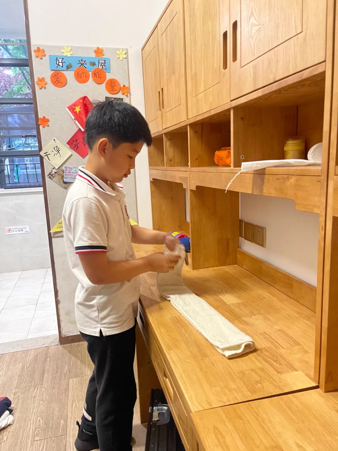 通过这个课堂,以及每日值日及评比等活动,小学住宿同学们都学会了将物品摆放整齐,归类收纳,并做到有序合理,便于取用。这样不仅优化了生活空间,还创造了更舒适、整洁的生活环境。有序的生活习惯还迁移到了学习上,很多家长反映孩子在学习上也更有条理了。