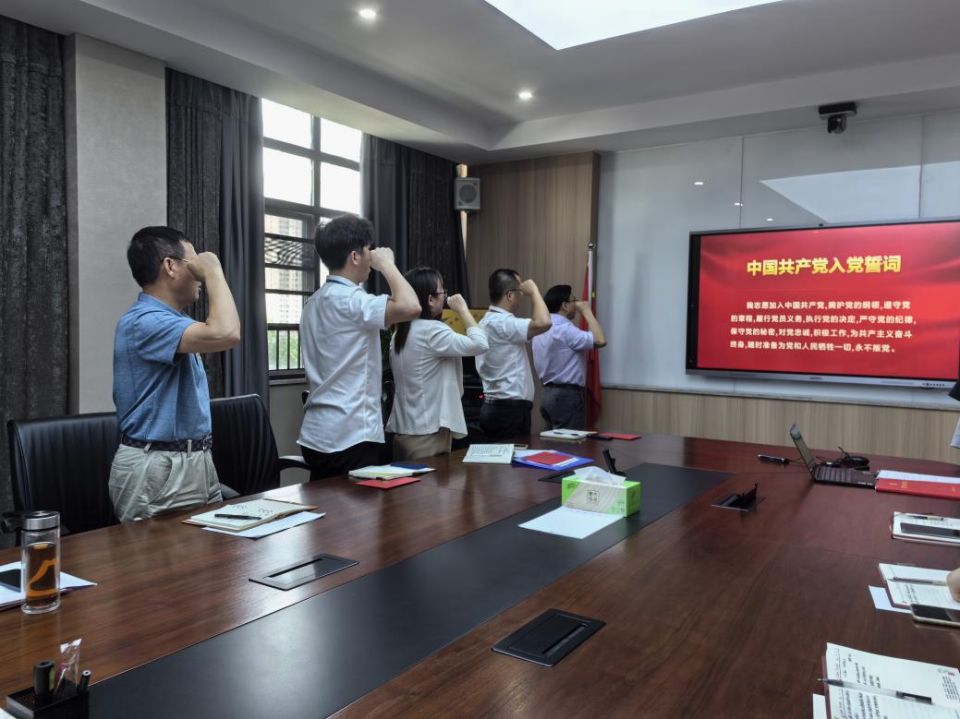 党支部第一书记费勇,党支部书记秦新春为过集体政治生日的党员颁发了政治生日贺卡,并一一合影留念。贺卡颁授活动结束后,全体党员在党支部书记秦新春的带领下,面对党旗庄严宣誓,“我志愿加入中国共产党,拥护党的纲领,遵守党的章程……”在领誓人的带领下,党员们面向党旗,佩戴党徽、高举右拳,庄严宣誓。铿锵的誓词,坚定的承诺,让每一位党员的心灵再次得到洗礼。