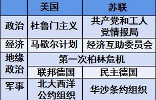 【教师】强调冷战开始的标志是1947年杜鲁门主义的出台和两极格局形成的标志是1955年华约的形成。