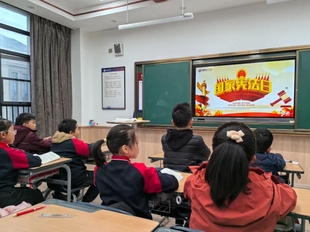 清晨,宪法日伴着晨光而来,孩子们一起高声朗读了宪法部分内容,重点学习了校园欺凌相关内容。