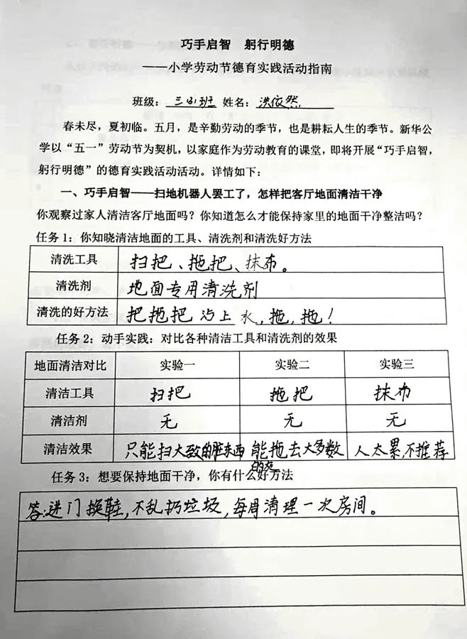 活动以趣味任务为切入点,鼓励学生化身“家庭清洁小达人”。