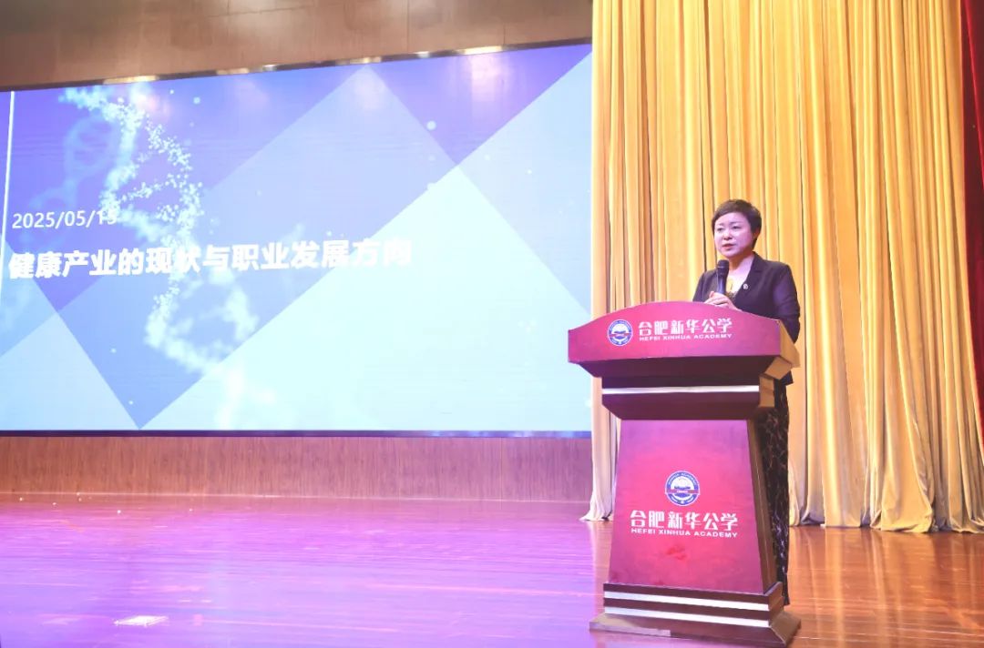 合肥悦倾城咨询管理公司董事长孟艳霞女士带来《健康产业的机遇》主题分享,深入剖析大健康产业的趋势与潜力。她结合自身25年创业经历,强调“跨界思维”与“终身学习”的重要性,为同学们打开职业规划的多元视角。