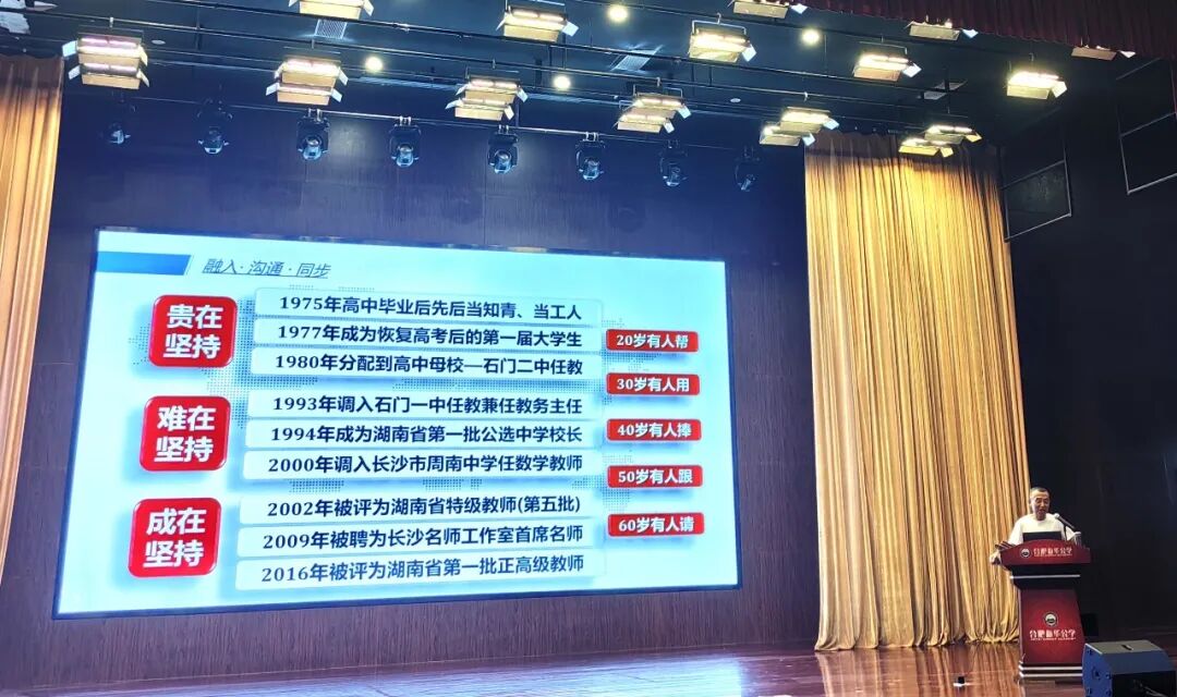 特级教师、全国数学教学研究会理事,湖南大学、湖南师范大学研究生导师夏远景教授以《教育是一个人与一群人的成长》作为开幕主题,奠定了整个培训的哲学基调。这句话看似简单,却蕴含着教育的本质真谛。教育不仅是知识的传递,更是生命的相互影响与共同成长。在这里,没有单向的施与受,而是在师生相遇的每一个瞬间,彼此都在发生着微妙而深刻的变化。新教师带着青春的激情叩响教育之门,老教师以岁月的沉淀重新审视教育初心,这种新老交融正是教育生态永葆生机的源泉。