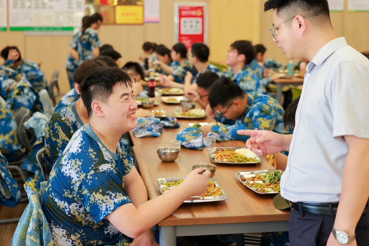 国防教育期间,全体新生展现了严明的纪律和顽强的意志。训练场上,同学们不畏艰苦,汗水湿透仍坚持完成每一个队列动作;宿舍内,在教官的悉心指导下,认真学习被褥叠放、物品规整等内务技能,自理能力与集体生活环境适应能力得到有效提升;食堂中,同学们井然有序,自觉遵守就餐纪律,懂得了珍惜粮食与文明礼让;国防知识讲座则增强了同学们的国防意识和家国情怀。一周的洗礼,同学们的精神面貌焕然一新。