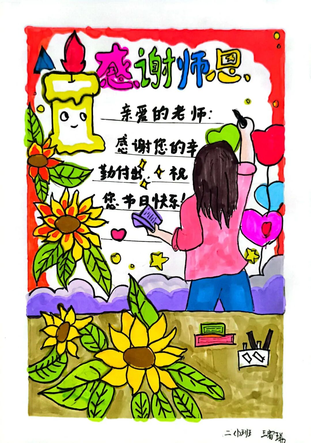 师泽如光,虽微致远;师恩似海,润物无声。在这个属于教师的节日里,让我们透过这些充满童真与温情的作品,感受那份浓浓的师生情谊,共同致敬每一位在三尺讲台上默默耕耘的教育工作者。