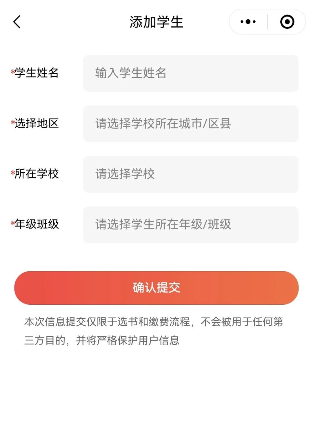 3.注册后添加学生(或选择学生),填写学生姓名、班级信息录入界面示例
