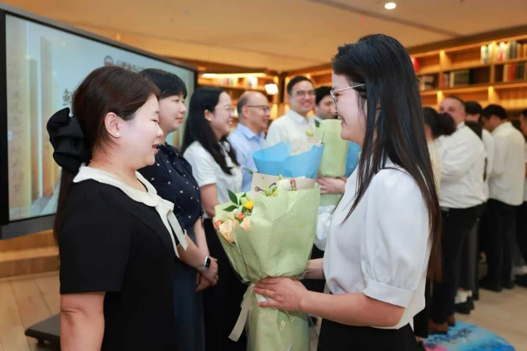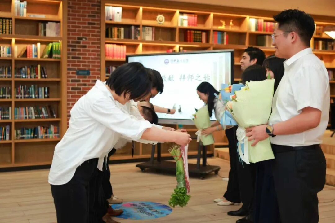鞠躬时的真诚,献花时的微笑,让现场充满了温暖的教育情怀。