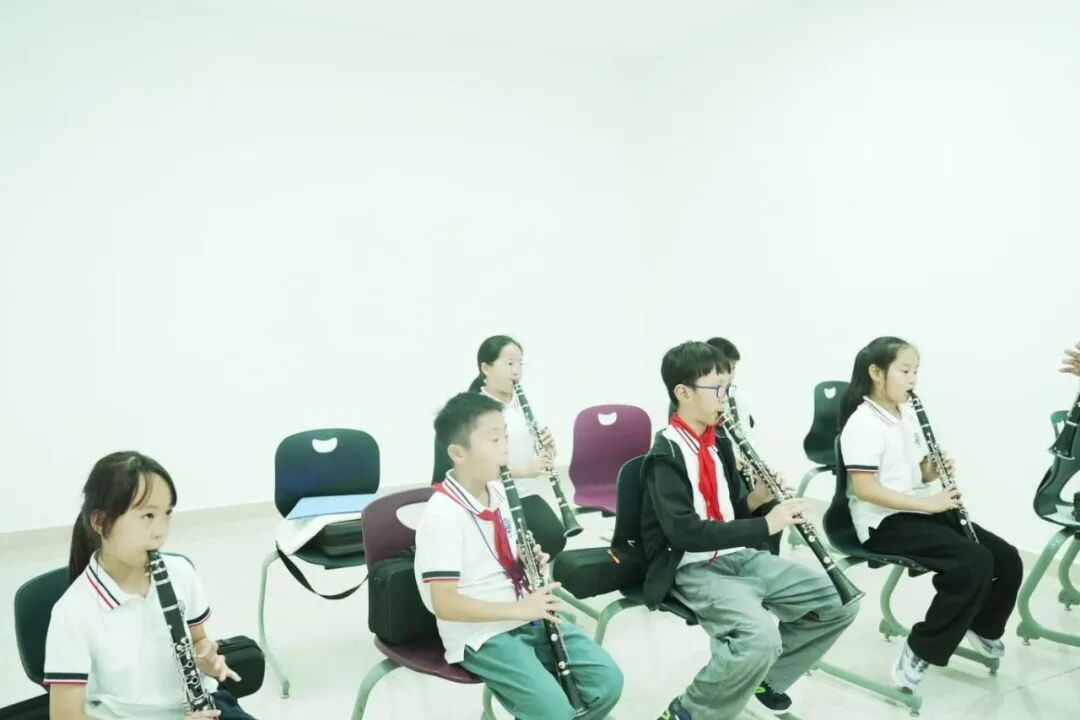 我们为孩子们提供了丰富多彩的乐器选择——小提琴的优雅、中提琴的深沉、大提琴的醇厚;长笛的清脆、单簧管的灵动、双簧管的甜美、萨克斯的浪漫;小号的嘹亮、圆号的圆润、打击乐的气势...每一种乐器都是一扇通往音乐世界的大门。令人欣喜的是,孩子们在课堂上表现出了浓厚的兴趣和真挚的热爱,他们好奇地探索着手中的乐器,眼中闪烁着求知的光芒。