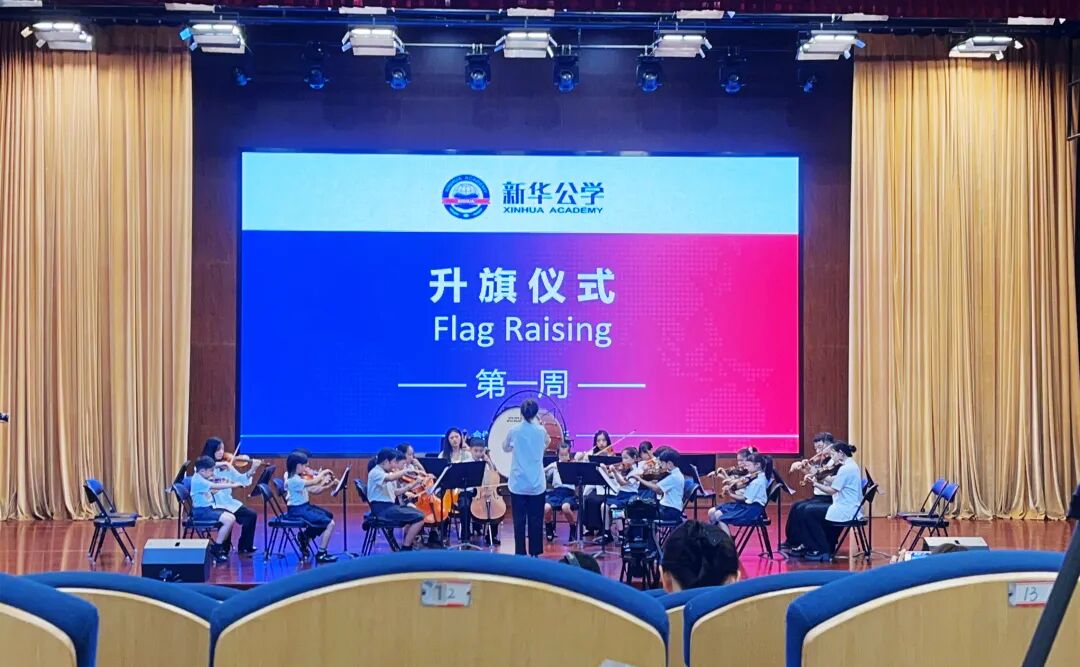 在本学期初庄重的升旗仪式上,新华国际青少年乐团以一场精彩的开幕演出拉开了新学期的序幕。