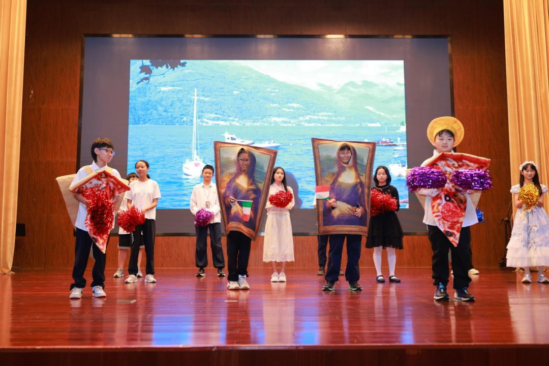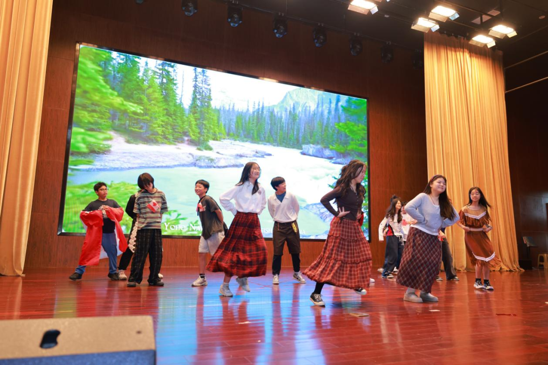 每一个班级的登场都是一次惊喜,每一次表演都赢得满堂喝彩。报告厅成了环游世界的航班,载着所有人的目光与惊叹,飞跃一片又一片文化的沃土。