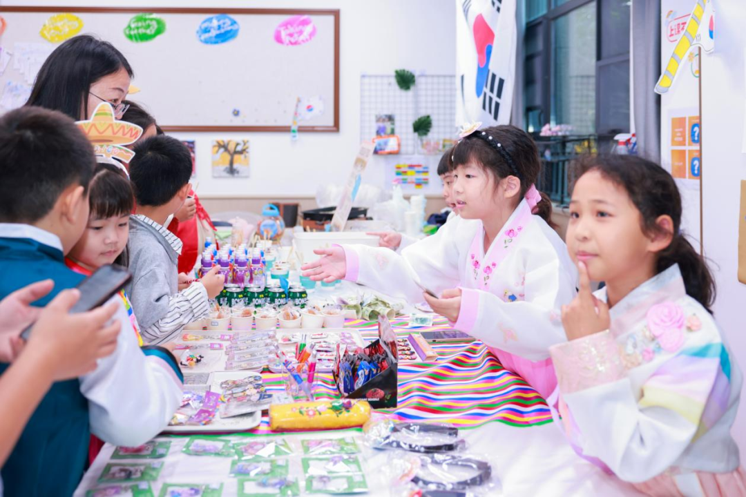 展示环节结束后,意犹未尽的师生与家长们移步至各班级教室,更深度的文化探索在此展开。各班的“国家展馆”早已准备就绪:墨西哥的塔可、泰国的特色零食、意大利的手工面具、印度的海娜手绘……孩子们不仅是文化的展示者,更是积极的交流者。他们分批穿梭于各个“国家”之间,在品尝、制作与游戏中,亲身感受着这个世界的多样与奇妙。