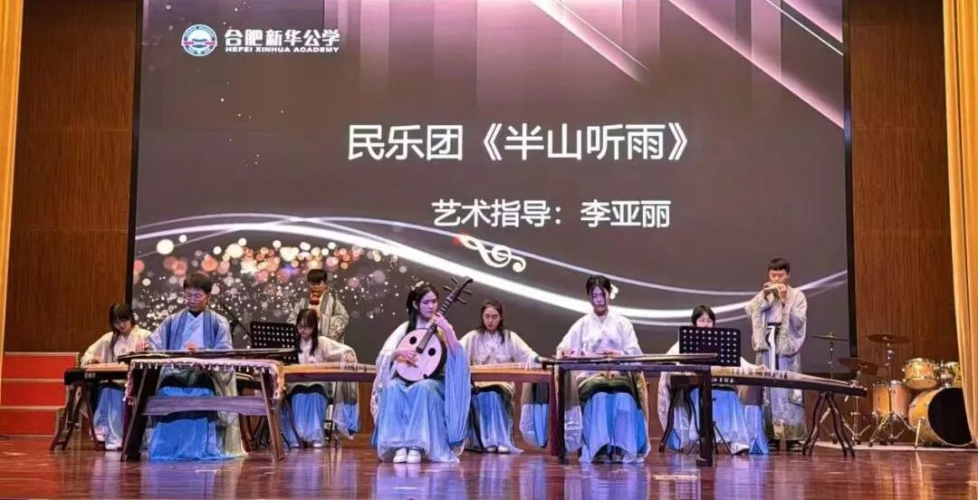 合肥新华公学民乐团成立于2023年9月,短时间内,民乐团多次荣获省市级乃至全国性竞赛奖项:“百花杯”第三届传统艺术盛典器乐大赛全国百花金乐奖、全国青少年音乐素养大赛一等奖、全国遗产知识大赛民族器乐组比赛一等奖……