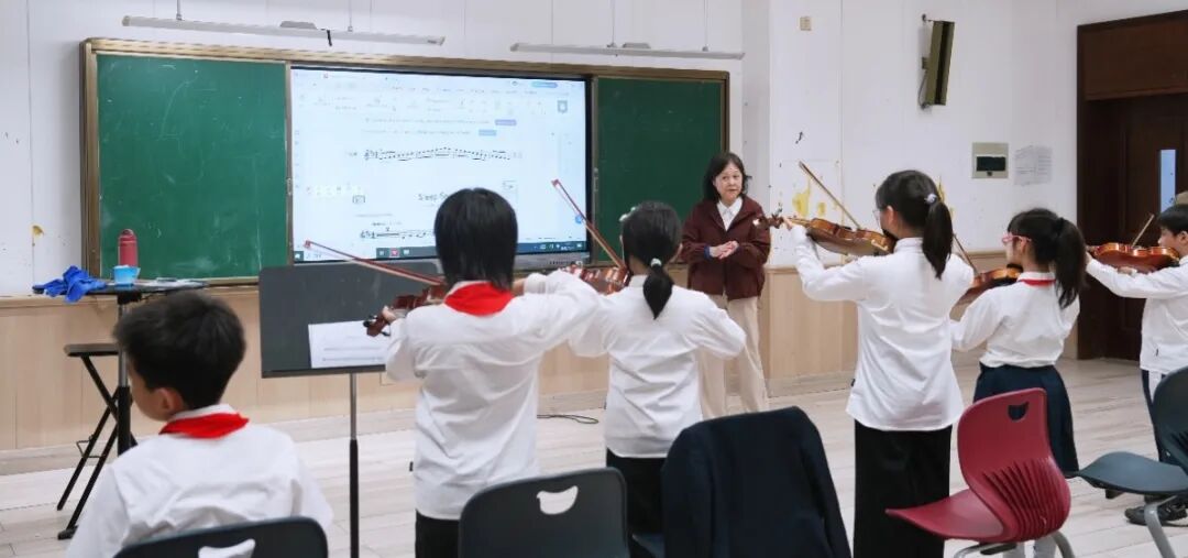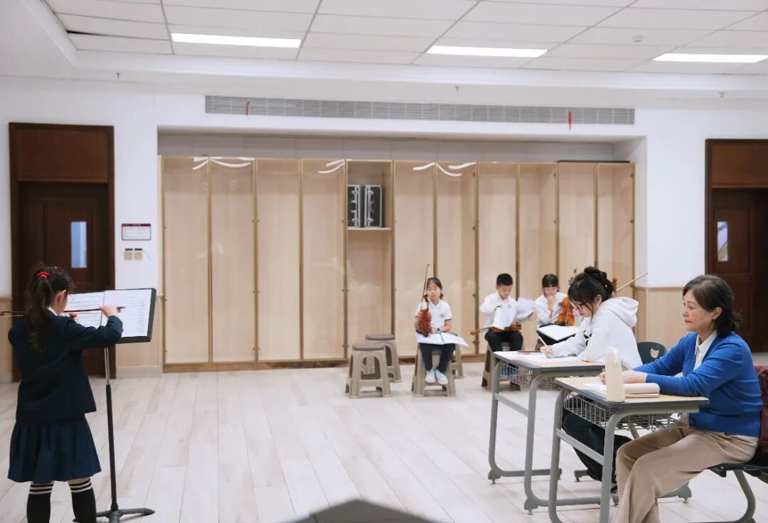 王多老师走进英皇音乐课堂,近距离观摩教学实况,并对XHIO新华国际青少年乐团的阶段性成果进行了专业考核。她充分肯定了同学们的音乐素养与教师团队的专业付出,也提出了宝贵建议,为后续教学与排练指明了方向。