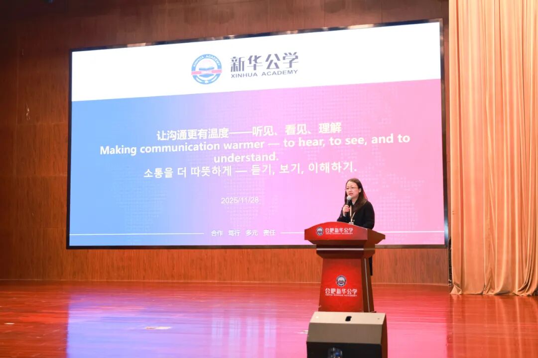 11月28日清晨8:05,融合部报告厅的座椅还带着初冬的凉意,却被家长们眼里的期待 “焐” 得暖了起来 —— 这场开放日的开场 “全体家长会”,直接把 “沟通” 和 “成长” 打包成了双 buff 盛宴。融合部王校长的《让沟通更有温度—听见、看见、理解》报告里,从管理团队到IB项目重要政策再到小初家校沟通渠道及流程介绍,家长们听的聚精会神,结束时还感概没听够嘞。