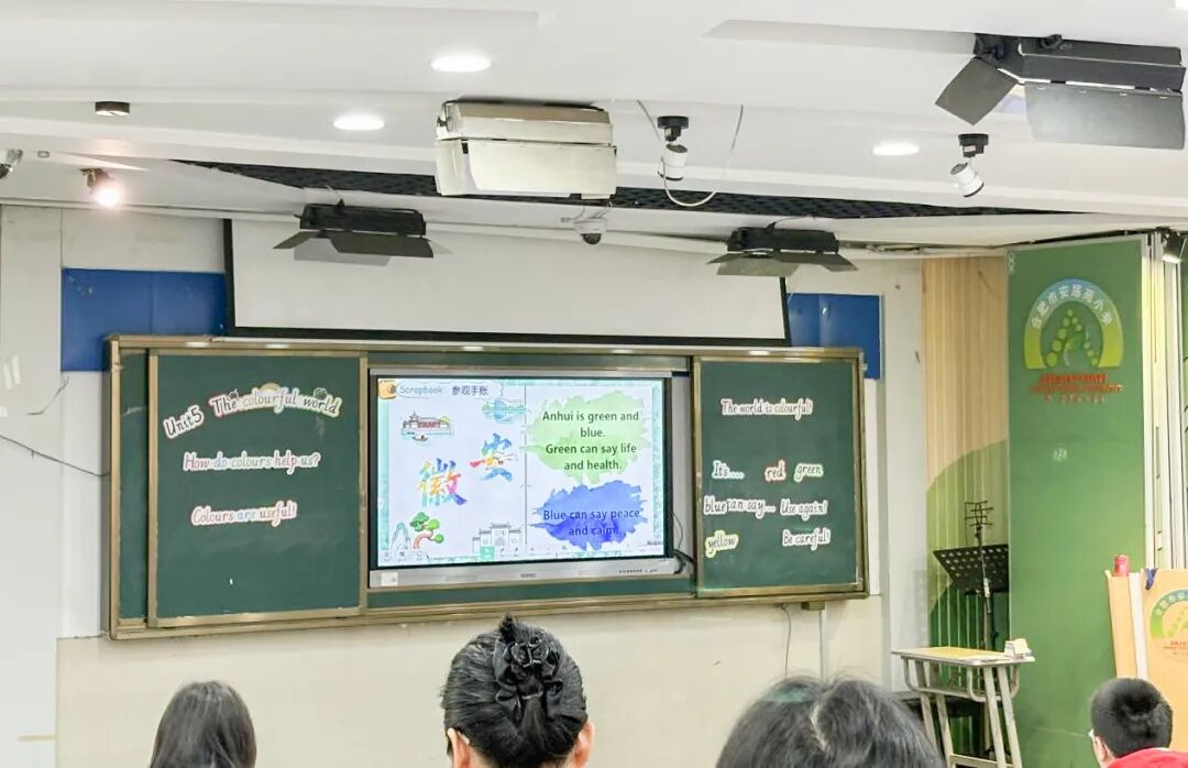 马珺老师带来的《The colourful world》阅读课,以色彩为载体,赋予语言教学深厚的文化底蕴与情感温度。课程紧扣“Colours are meaningful and useful”主题,采用“主题感知—探究—建构—升华”四阶教学模式,让颜色成为连接语言与文化、生活的纽带。教学中,从基础的认识颜色词汇,逐步深入到解读颜色背后的文化意涵,关联朱红、黛青等中国传统色彩,传递传统文化魅力;更立足本土,结合合肥地方特色,引导学生创意发散,用英语描绘“家乡的颜色”,如包河的静谧墨色、庐阳的秋日金黄等,让语言学习落地生活、联结乡情,实现从语言积累到情感表达的深度进阶。