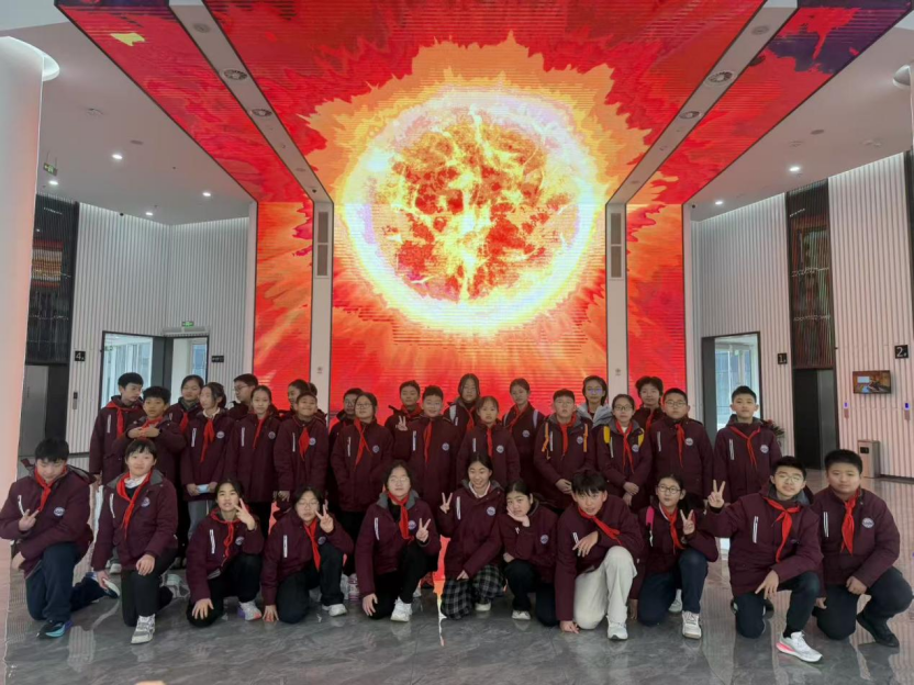 在聚变创新馆内,同学们先学习了核聚变的历史背景及发展进程。自20世纪50年代起,一代又一代的科学家们前赴后继地研究聚变能源技术,为全人类探寻无尽的清洁能源而奋斗。聚变项目作为人类进程发展战略重点项目,全球顶尖科学家及科研单位通力合作,现今已展示出第四代成果,在巨大的磁约束装置模型前,讲解员通过动态演示,生动解析了核聚变反应原理:氢原子核在超高温下克服库仑斥力聚合,发生质量亏损并释放巨额能量,这正是太阳发光发热的核心机制。了解到在我们生活的城市里,距离学校仅15公里的地方,凝结着一代又一代的科学家们触摸太阳的科技智慧,同学们激动自豪的心情瞬间点燃,世界顶尖科技原来离我们这么近。
