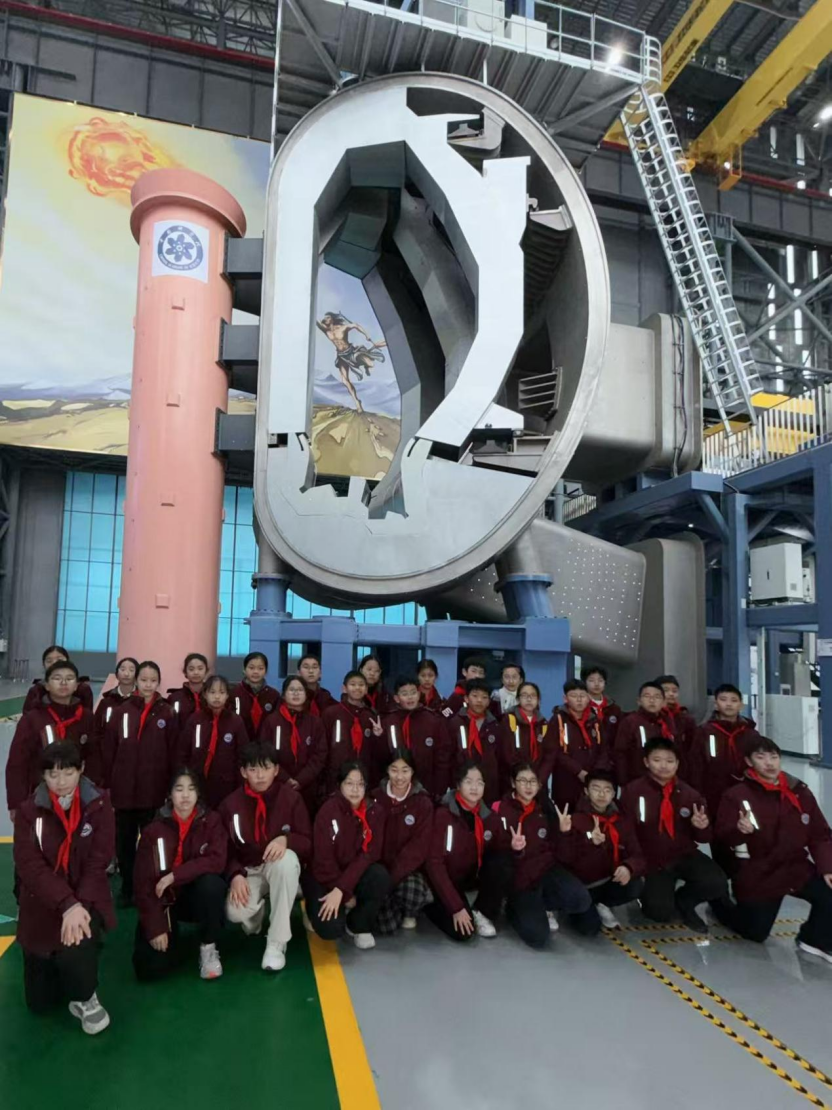 在参观聚变堆主机关键系统综合研究设施(CRAFT)园区的1/8真空室研究平台时,同学们通过互动实验亲手触摸真实的BEST核心技术,近距离观察世界顶尖科创成果。同学们不仅透过“橘子瓣”看到后方人类始祖“夸父逐日”墙绘,再次体会到父辈科学家的逐日决心,还看到了严谨科学家们的“中国式浪漫”,更豁然理解了晦涩难懂的聚变反应理论核心及运行知识。这场科技研学不仅让新华“荷露”少年们读懂了“终极能源”的战略意义,更在少年心中播下了探索未知、助力能源革命的科学种子。站在园区远观BEST建设工程现场,我们更期待BEST实验堆早日建成,顺利运行,在合肥的城市上空发出世界上第一束聚变之光!