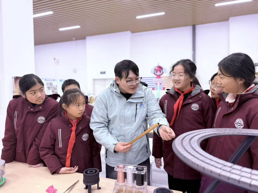 如果说在综合研究设施(CRAFT)园区参观学习世界顶尖的科学技术及大科学装置,拓宽了新华“荷露”少年们的科技眼界,那么接下来在合肥综合性国家科学中心能源研究院,同学们再次被各种物理知识颠覆认知。