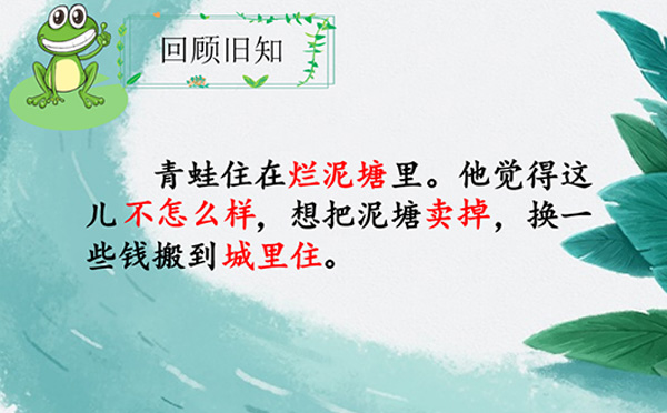 二年级语文课堂教学《青蛙卖泥塘》授课教师:陈佳洁,01、学习目标 ① 通过指导朗读,……